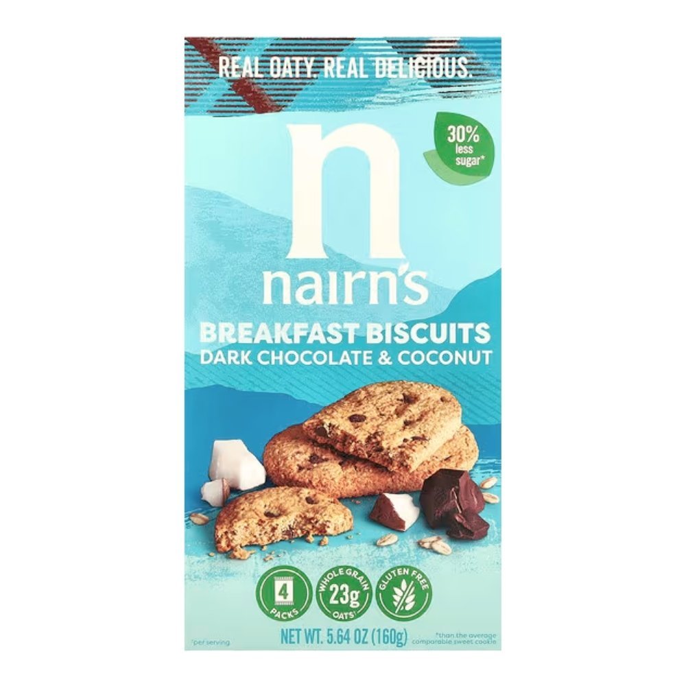 עוגיות : ביסקוויטים לארוחת בוקר, שוקולד מריר וקוקוס, 4 חבילות, 160 גרם Nairn's